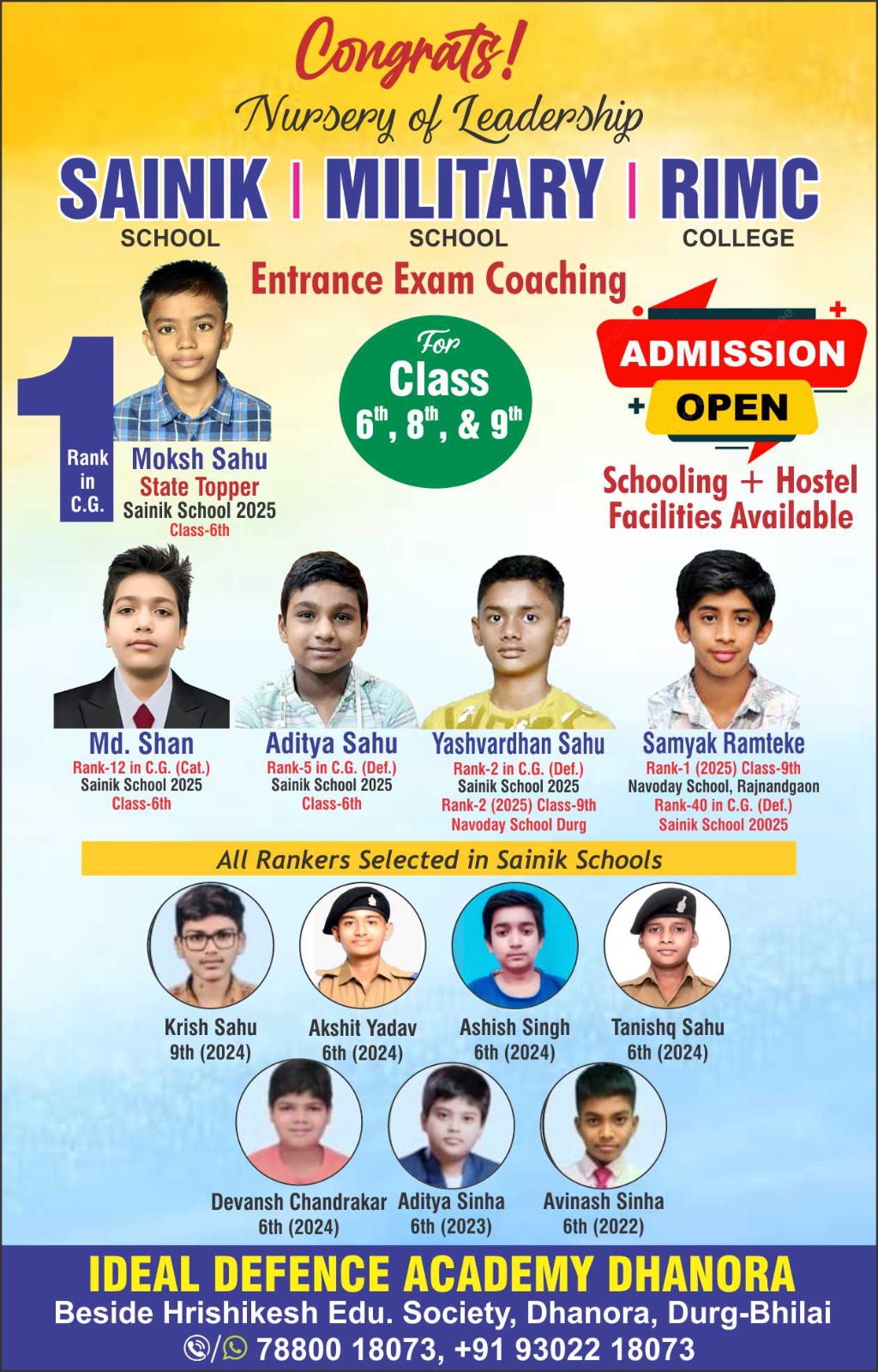 Specialized Coaching: Dedicated to entrance exams for RIMC, RMS, Sainik Schools, and Navodaya Schools.